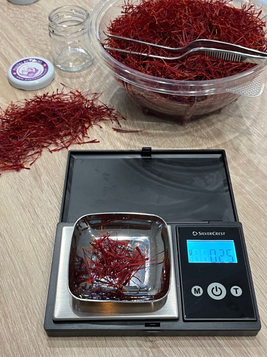 Le Safran millésime 2025 est disponible, en pot de 0.25g. à 10€, 0.5g. à 20€ et 1g. à 40€. Cultivé à partir de bulbes Bio, 100% artisanal, 100% naturel, toutes les étapes sont réalisées par nos soins.